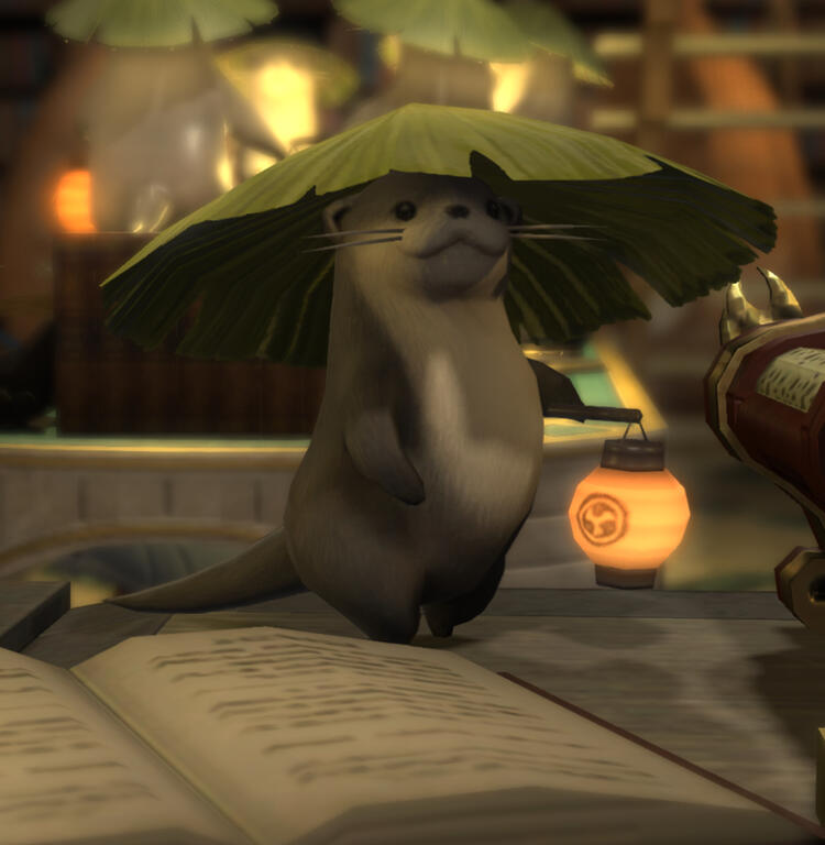 Bolívar Jangle, normally shortened to "Bo Jangle" or just "Bo", is Alexis' beloved otter companion, whom can often be found trailing the witch on her travels. The auspicious critter seems to tingle with aether, leading many to believe the critter is the witch's familiar, but such a tale is far from the truth. On a trip to Hingashi, Alexis found one of the more peculiar sights of her journey, a fishmonger in an argument with a mute otter, berating the poor creature for trying to steal a fish. Finding the creature most adorable, she quelled the one-sided squabble by buying a few fish from the merchant to give to the otter. Afterwards, the otter took a keen interest in following Alexis about the city, prompting Alexis to purchase him more fish. She soon christened her new friend "Bolívar Jangle", quickly shortening the name to "Bo" for conciseness. The otter has followed her on her travels ever since, though sometimes he disappears on his own for awhile, eventually returning to Alexis with a pertinent hunger for fish. Those who observe Bo find him to be in an auspicious state of peace, as if he has achieved the perfect balance within, leaving him free of all thoughts and worries... Other than fish anyways.