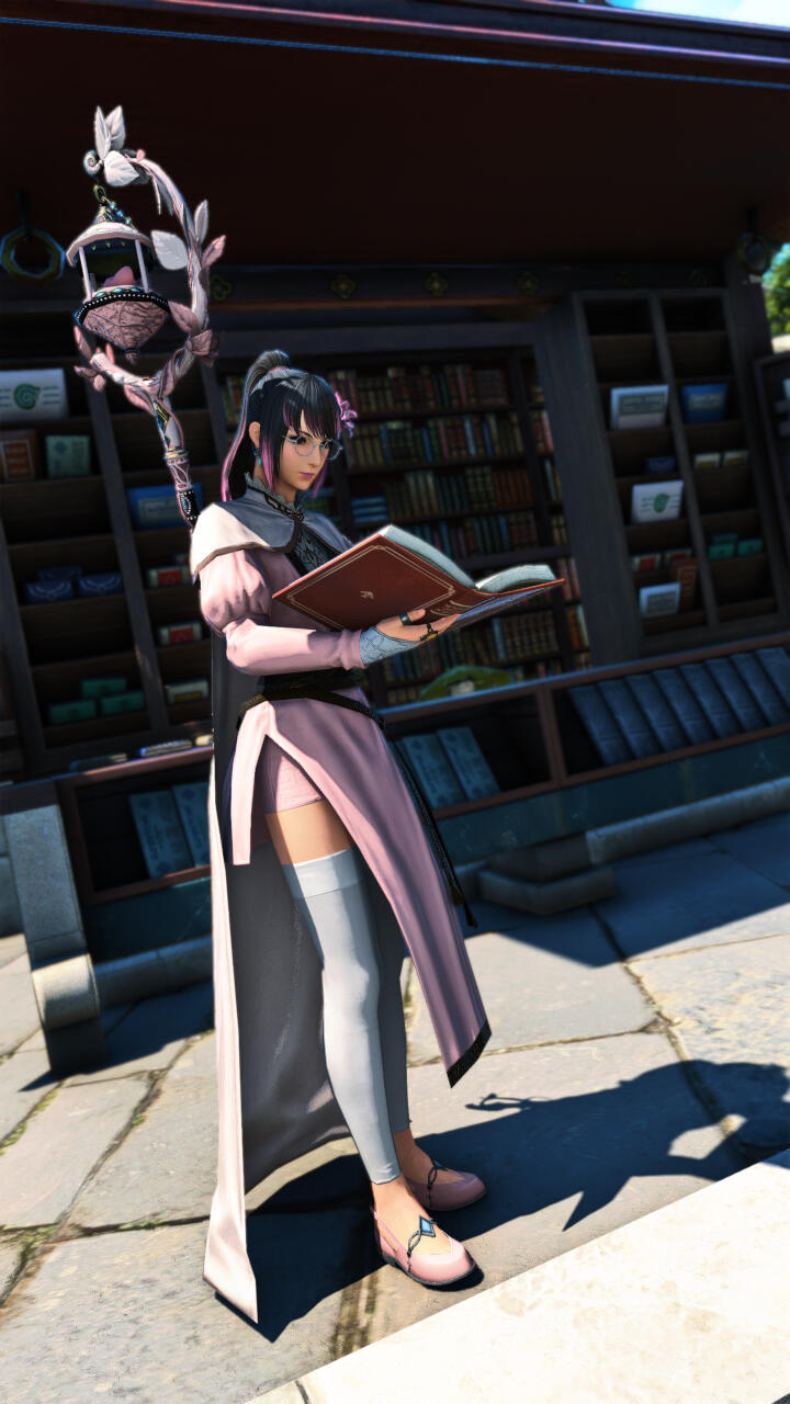 Alexis Asta is a sweet, innocent young woman seeking to find her place in the world. The Hyur hails from a long lineage of scholarly Sharlayan witches, and can claim a bloodline steeped in the art of white magicks. As a late-blooming mage, she is quite inexperienced in harnessing her innate ability to manipulate aether, and is devoted to practicing the art until she is as masterful as the witches that preceded her. Magicks aren't the only trade of the Asta's, whom have ran a bookstore in Sharlayan for generations, specializing in the procurement and sale of ancient writings, acting as a sort of private gleaner service for books The Forum would deign best left in the forbidden sections of the Noumenon. This service has put the Asta's at odds with the Bibliothec faction in particular, whilst making them useful compatriots for the Students of Baldesion.Daughter of Aestella Asta, Alexis grew up in her family bookstore, Asta's Athenaeum, alongside her older sister, Aestrea, sheltered from the hardships of the Garlean conquests and the Seventh Umbral Calamity. Unlike her sister, Alexis showed little affinity for magic, and so she spent most of her childhood reading as her older sister bloomed into a witch. A part of Alexis lamented that she was unable to harness aether like her mother and sister, and whilst she prayed to goddesses for access to their power, she became content with the fact that her specialty lie somewhere in the realm of the written word. The books of the Athenaeum left her with a hunger for knowledge, and helped her to develop a passion for learning about most any subject she could find, though her particular favorite quickly became history. She loved how her readings let her learn about the world outside of the city, and left her aching to get a chance to see all it had to offer for herself one day...As she grew older, she also began to work as a bookclerk in the bookstore, and eventually found herself watching over it alone her mother and sister traveled Hydaelyn in search of new works to sell back home. Whilst she pined to join them on their adventures, she found herself content with a quiet life in the sleepy bookstore, where she could spend her days reading and dealing with the occasional customer. She took advantage of the time to prepare herself to eventually enroll in the Studium to become a scholar, once her mother and sister returned from their adventures abroad.Yet fate had a different plan for Alexis, one she never could have anticipated. In the midst of her dreams, she found herself visited by the hazy apparition of Menphina herself, whom encouraged her "brave little spark" to "become the witch you were always destined to be." When she awoke, she found herself filled with a peculiar feeling and quickly deduced that she could suddenly feel the aether brimming through and around her. With her family away, she decided to keep this new revelation to herself, and with the help of a few books, quickly learned how to harness her newfound talent to make running the bookstore easier. Things like enchanting a self-sweeping broom, or making a book shelve itself in the right spot became second-nature to her, and left her with the time she needed to properly delve into the realm of white magic. Alexis spent the next few months after her enlightening discovery honing in her rudimentary skills, quickly becoming quite skilled for a self-taught mage. All she could do was bide her time until her mother and sister came home, so that she could reveal to them that she had been a witch all along.Finally, the moment arrived, and the big reveal was received with naught but the warmest of acceptance from Aestella and Aestrea. They wasted no time in helping Alexis get properly up to speed with her magicks, and within a couple of years, she had all but caught up to her sister, though both were still far from the sage wisdom of their mother. Yet, the more Alexis found herself learning about her ability to manipulate either, the more she found herself yearning to find a more practical application for her studies, beyond that with which she had initially become a witch. That pining for the same sort of adventures that she had read about grew all the more fiery as she became more confident in her magical skills, until it finally reached a bursting point. She just had to convince her mother to let her explore the world, and so she began rehearsing the conversation with her mother in her head over and over, ready to explain her reasoning until she was blue in the face.Of course, Aestella hardly needed convincing, and whilst she expressed her worries up front, was more than happy to let Alexis explore the world on her own, provided that she write home every once in awhile. With her mother's blessing, and a bit of planning (and of course, bit of her mother's gil, so she could get past the docks), and Alexis set off on her own for Eorzea, striking out on the winds adventure in search of something new...
